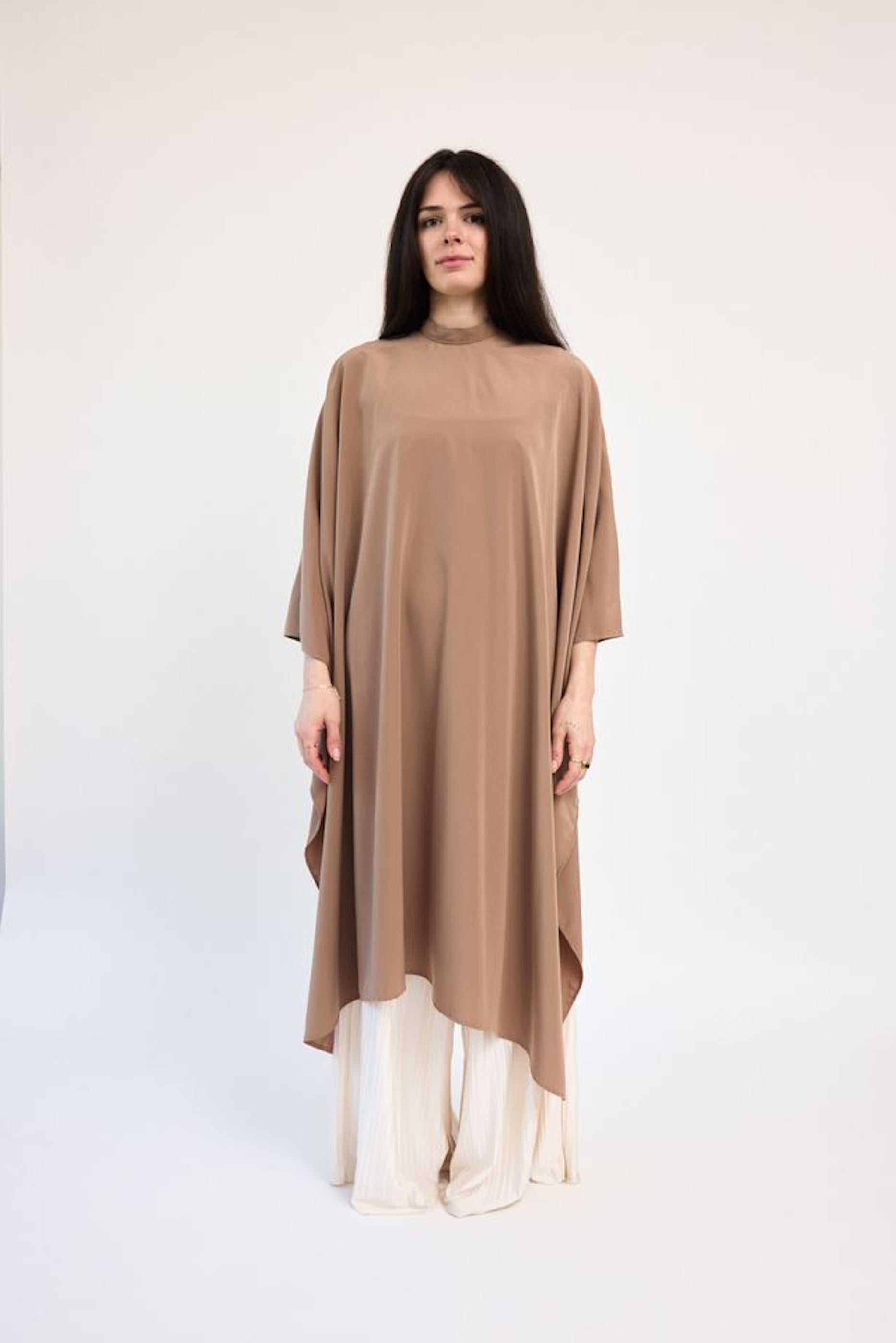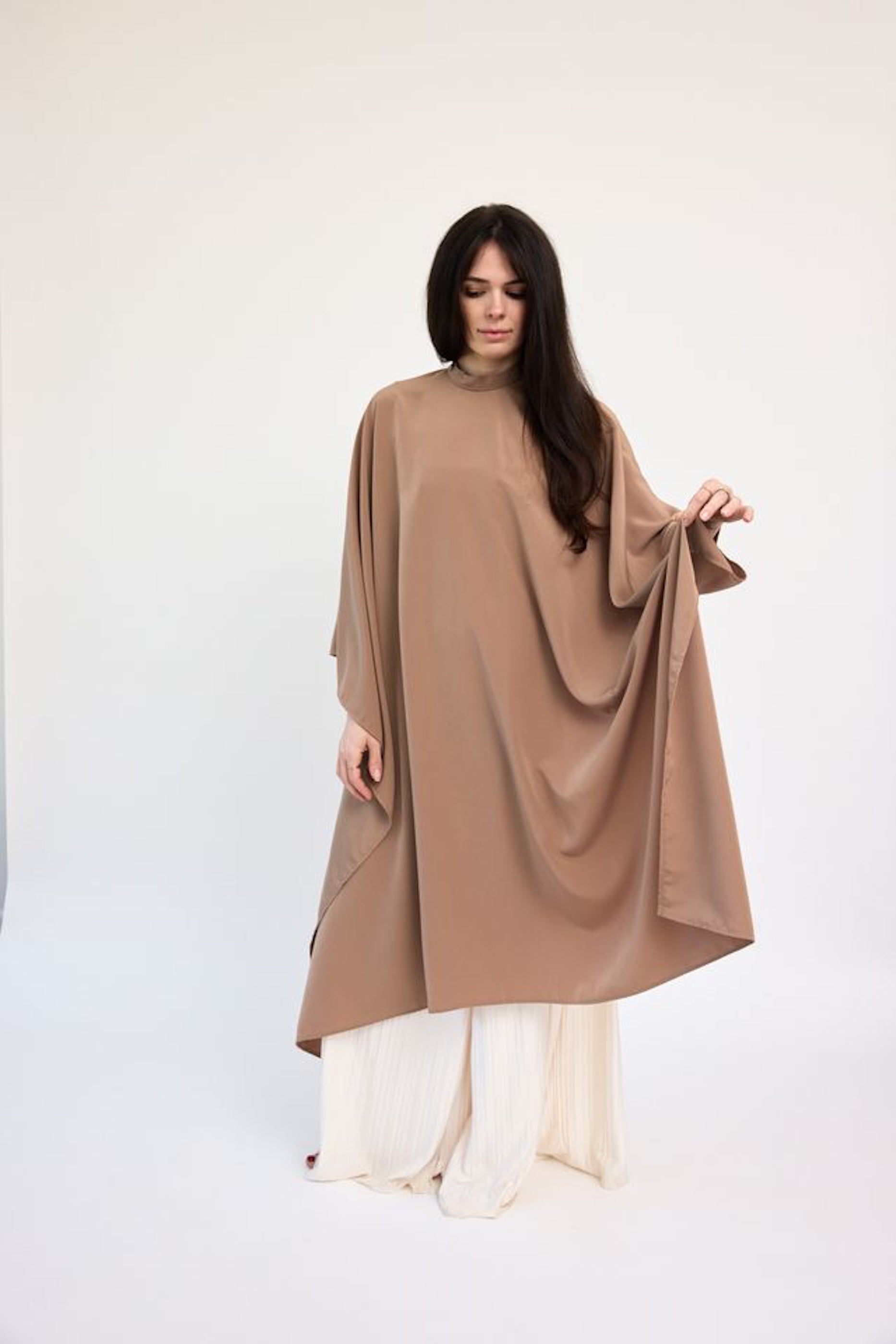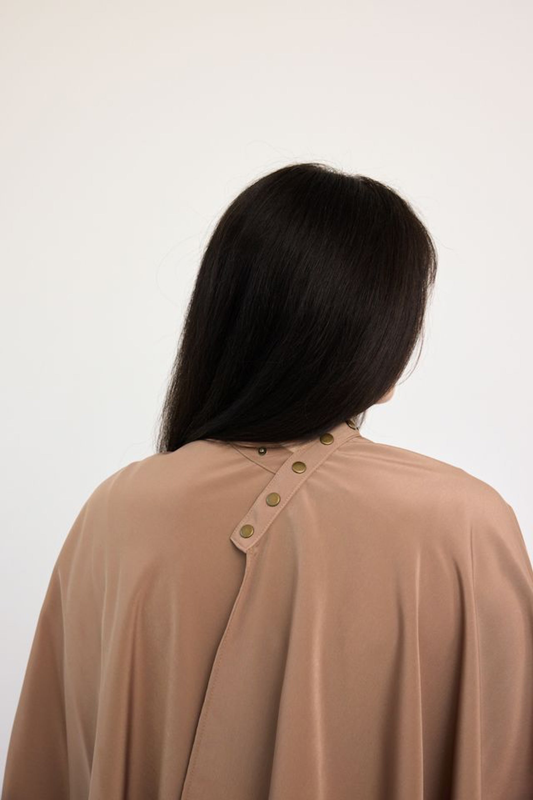 This luxurious cape comes in a gorgeous almond shade that is accompanied by brushed brass hardware.