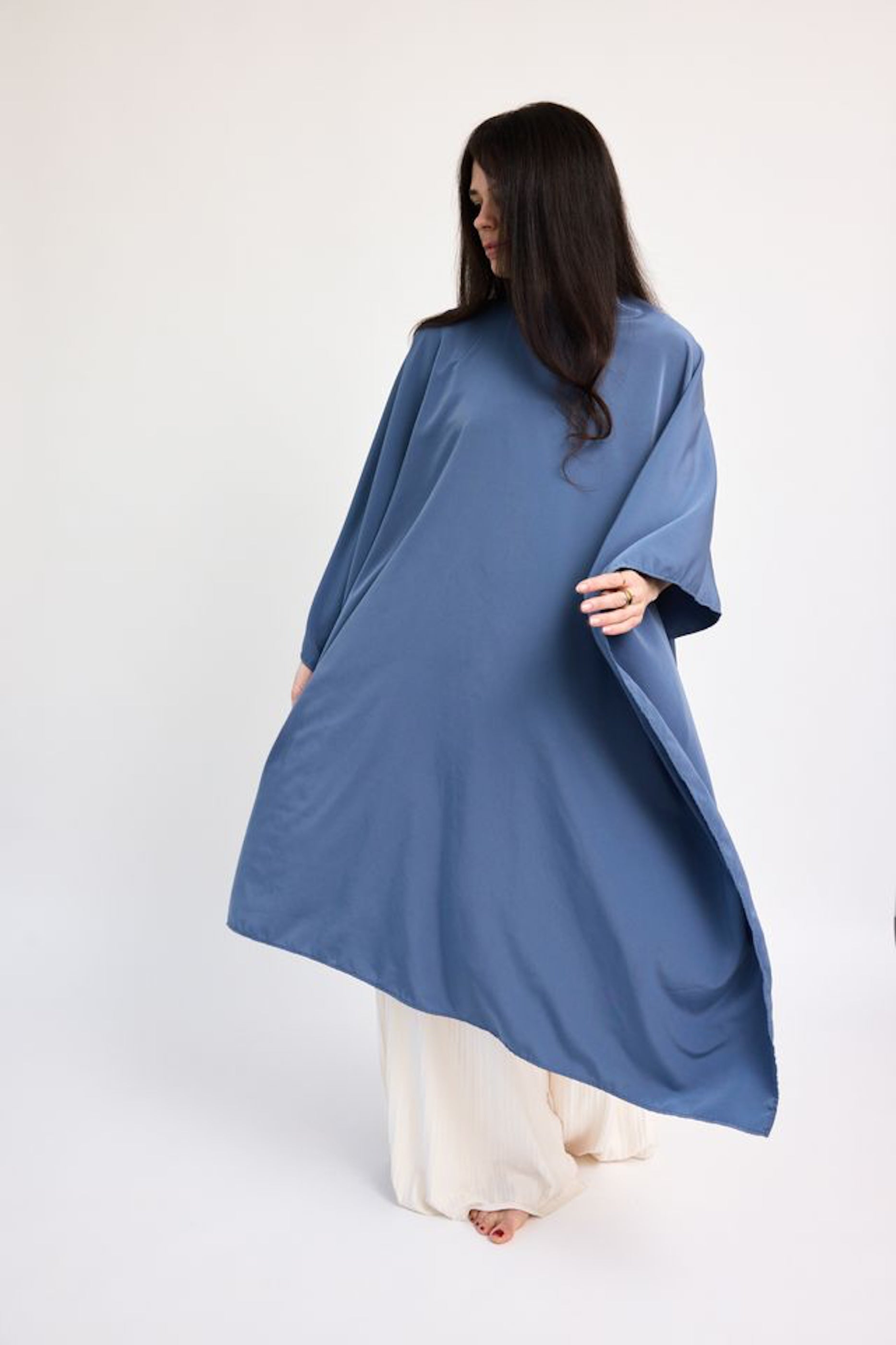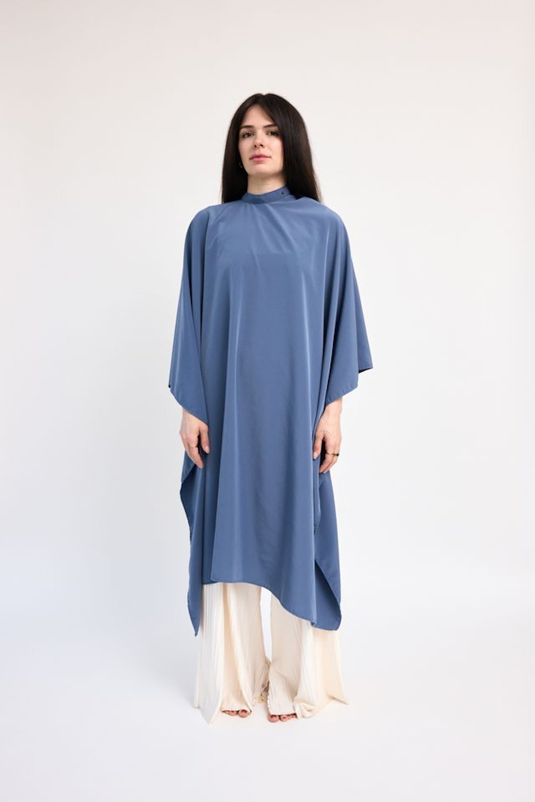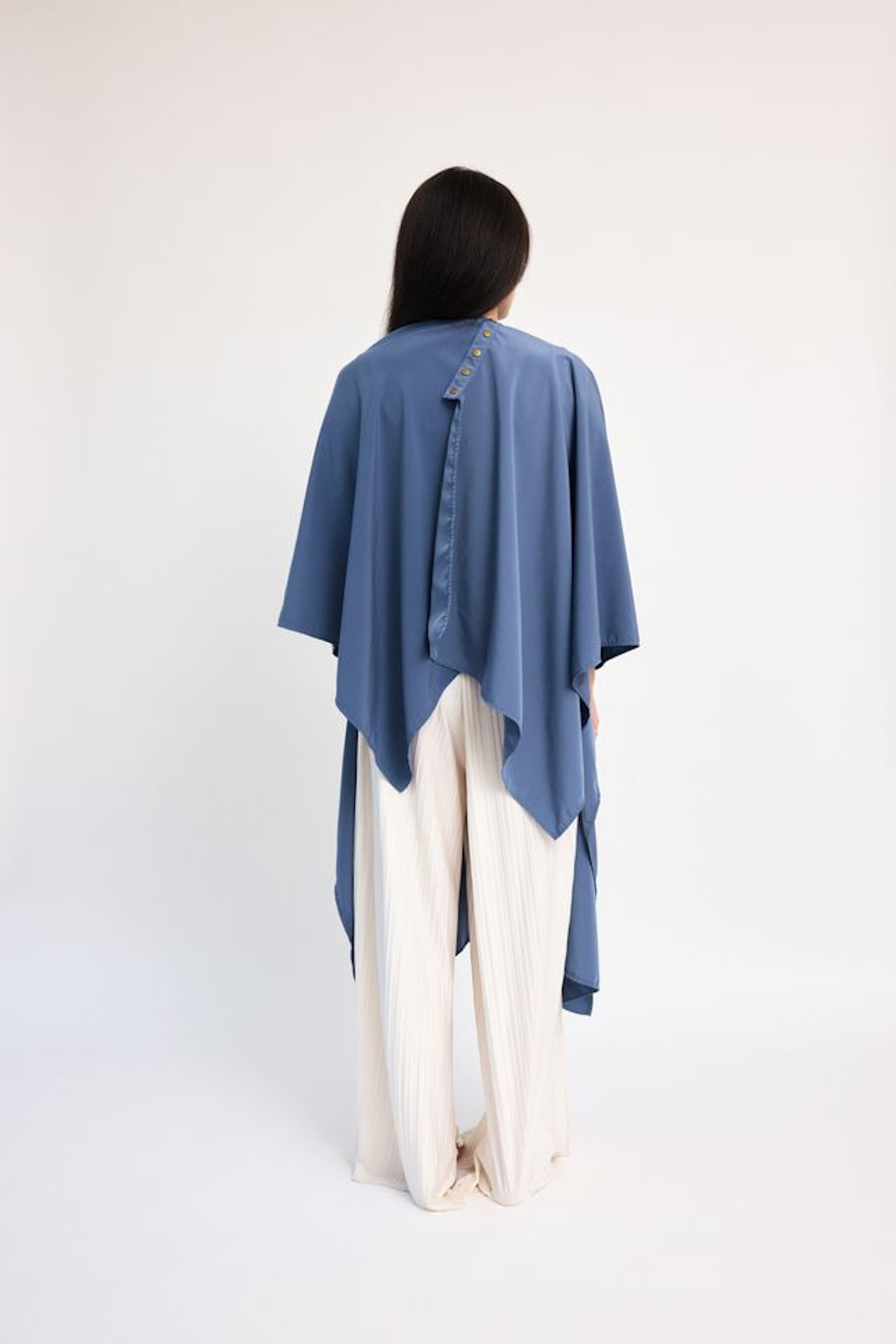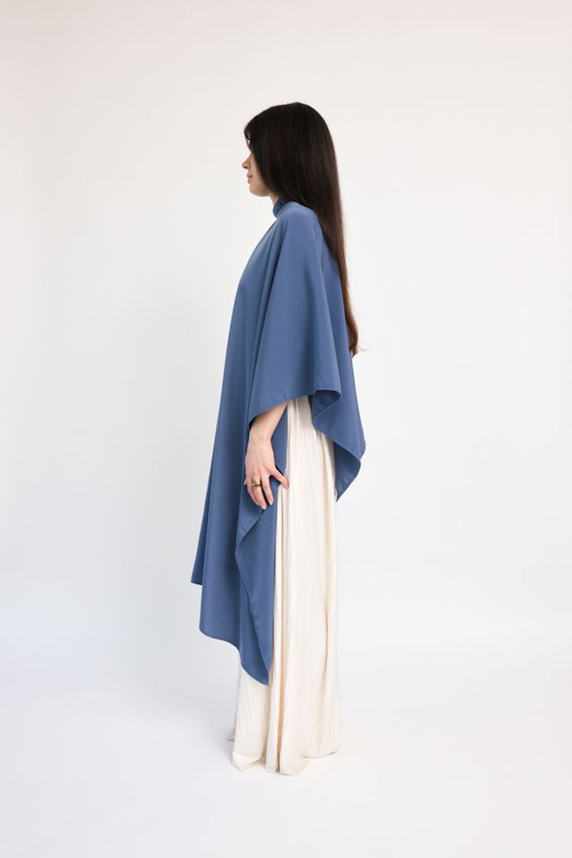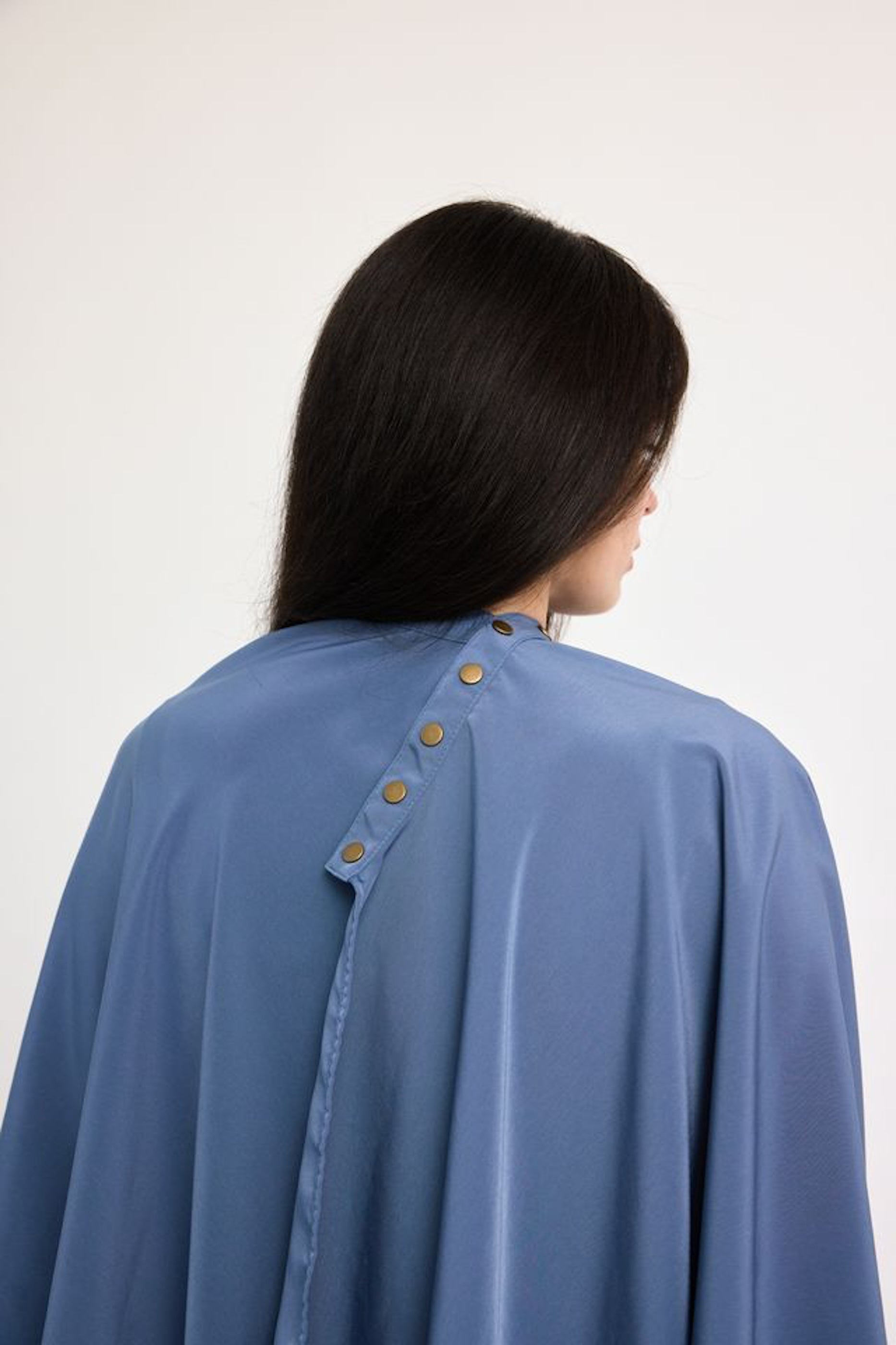This luxurious cape comes in a stunning rich blue shade that is accompanied by brushed brass hardware.