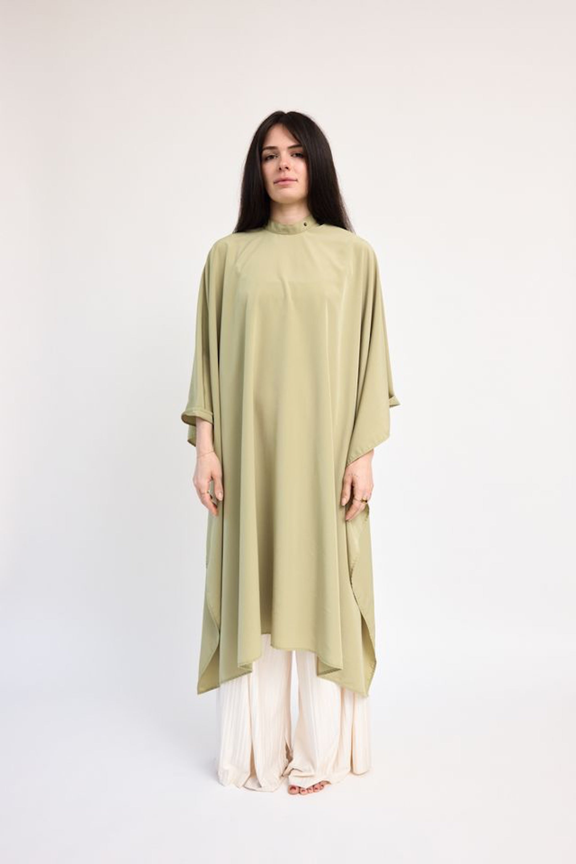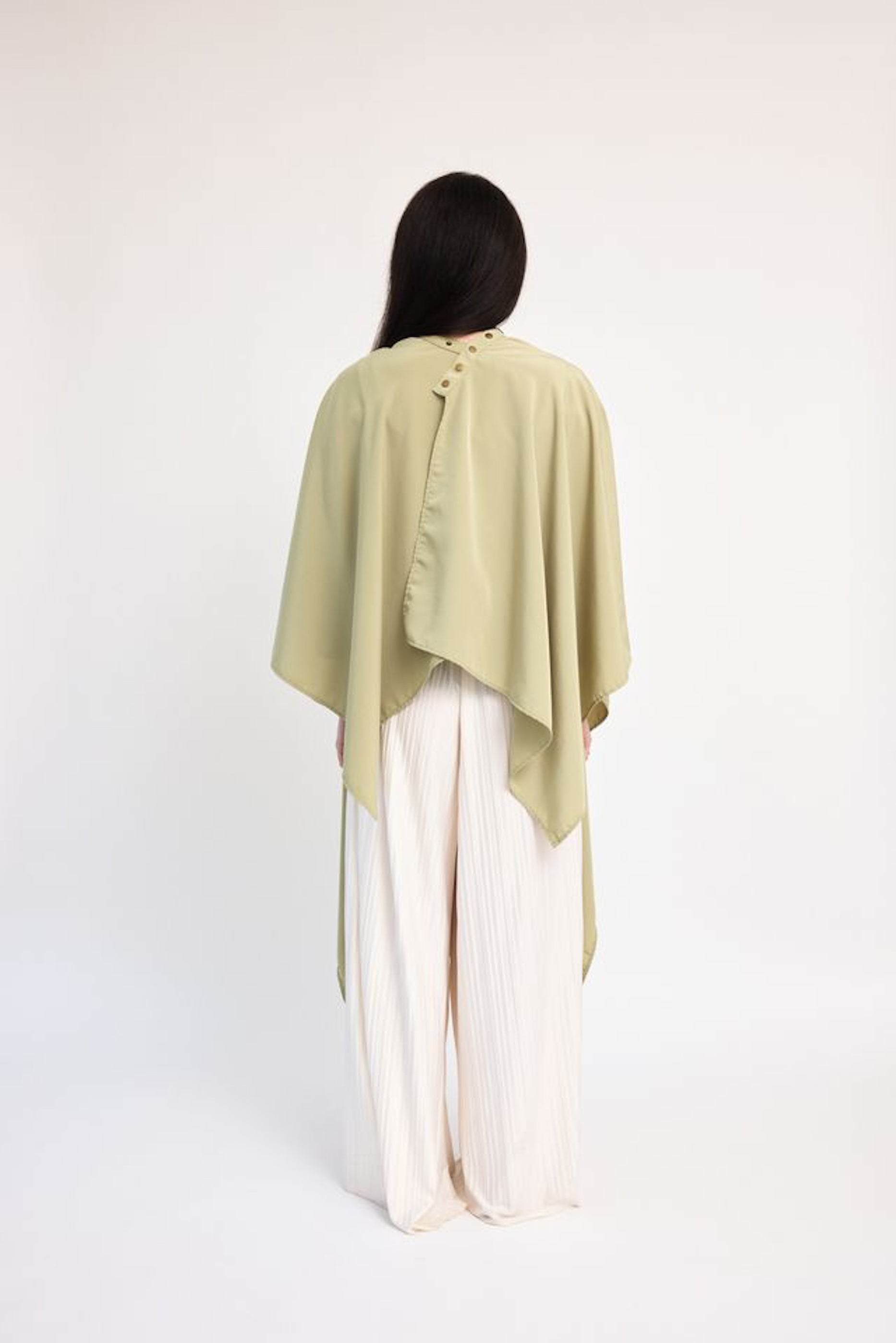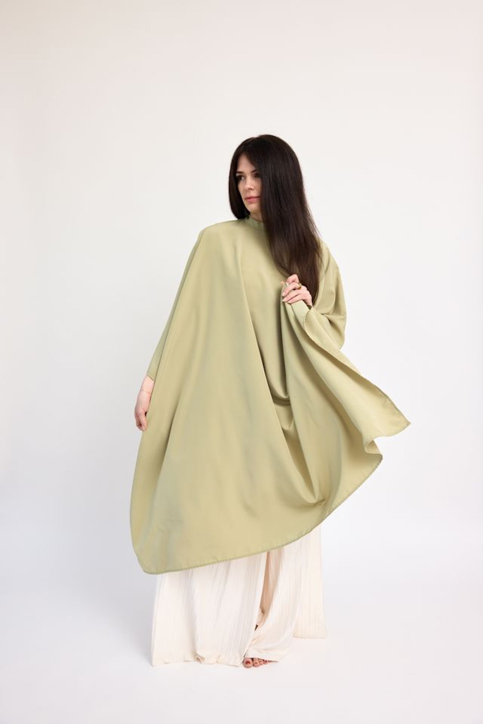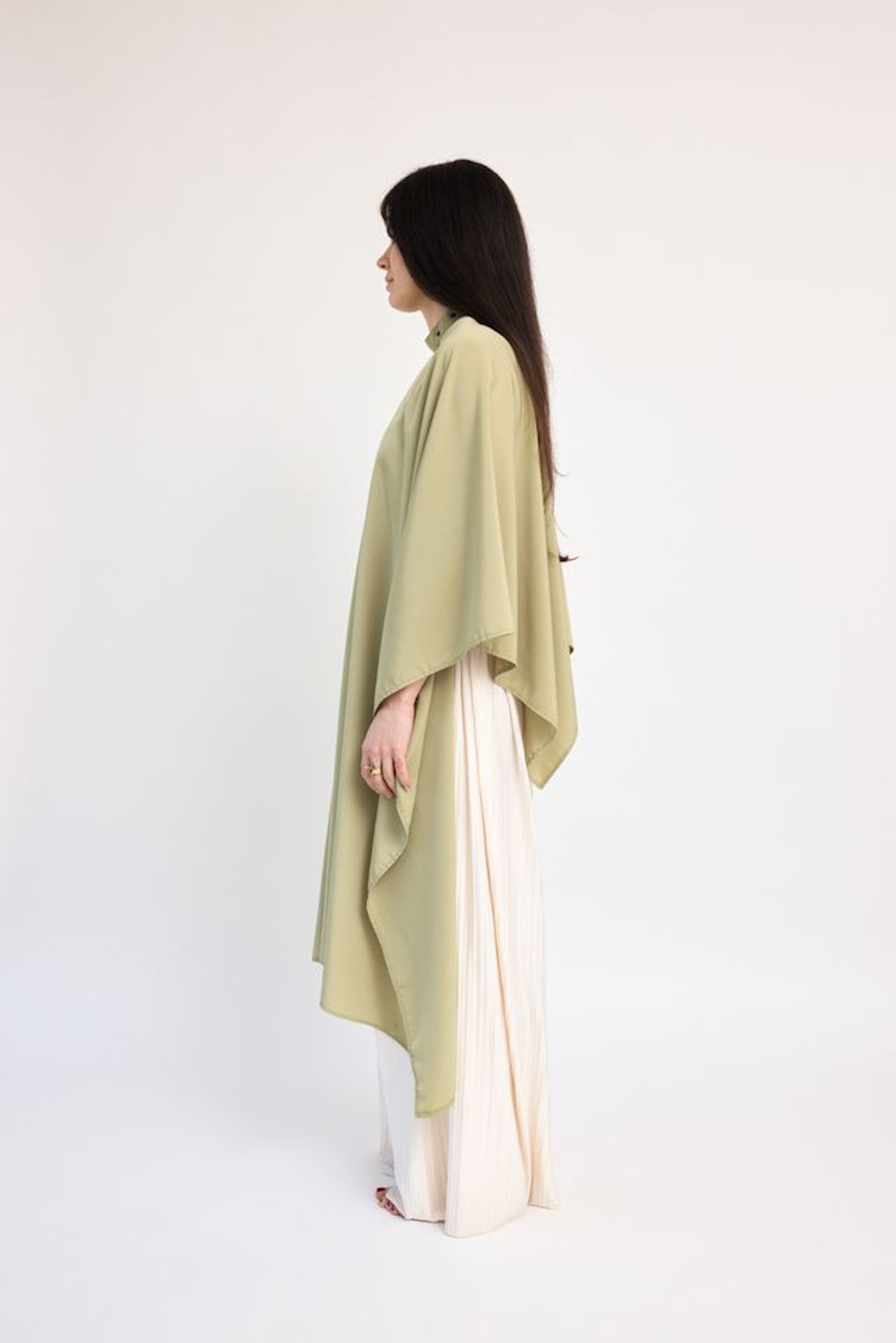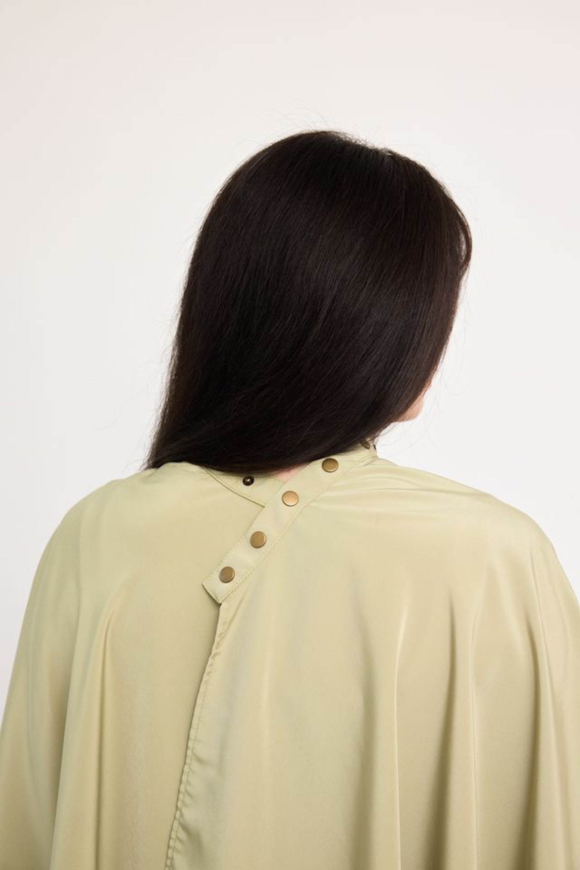 This luxurious cape comes in a beautiful green shade that is accompanied by brushed brass hardware.